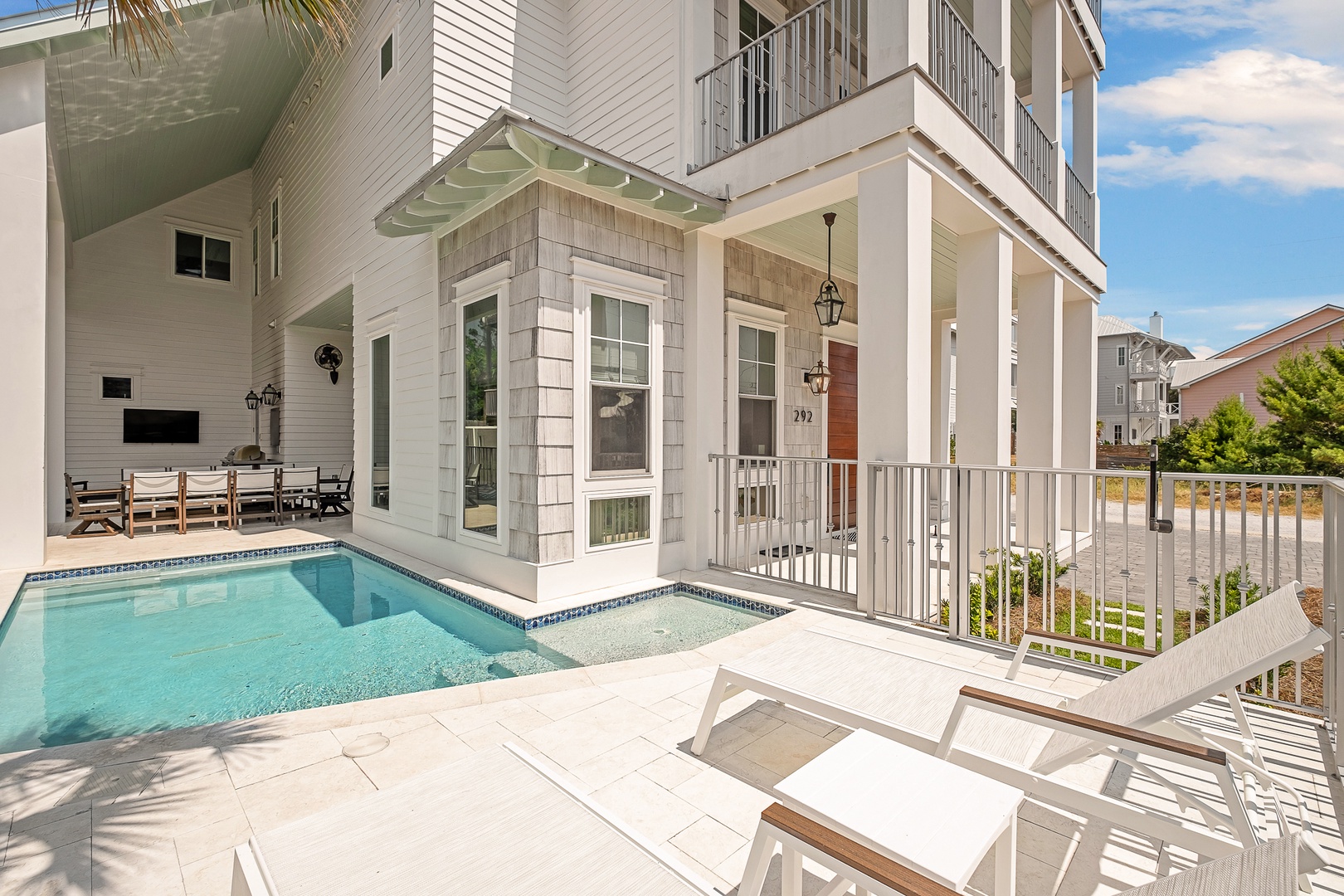 Step inside Coastal Dream, and you'll be welcomed by colorful interiors that reflect a fun, trendy vibe, making this home feel as lively as it is luxurious. The spacious open-concept layout features multiple living areas designed for relaxation and entertainment, with the heart of the home being the chef’s kitchen, which flows seamlessly into the living and dining spaces. Outside, enjoy the sun in style with a heated private pool and a fully equipped summer kitchen, ideal for poolside cookouts and evening gatherings. The home also includes a six-seater golf cart for easy trips to the beach and nearby attractions, as well as six bikes for exploring the charming streets of Seagrove Beach.