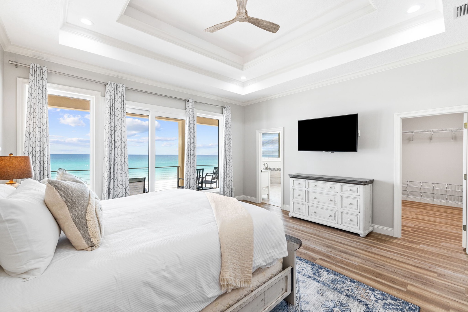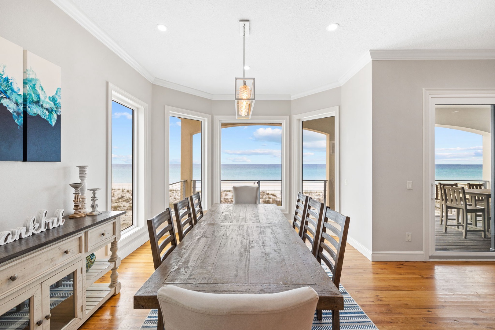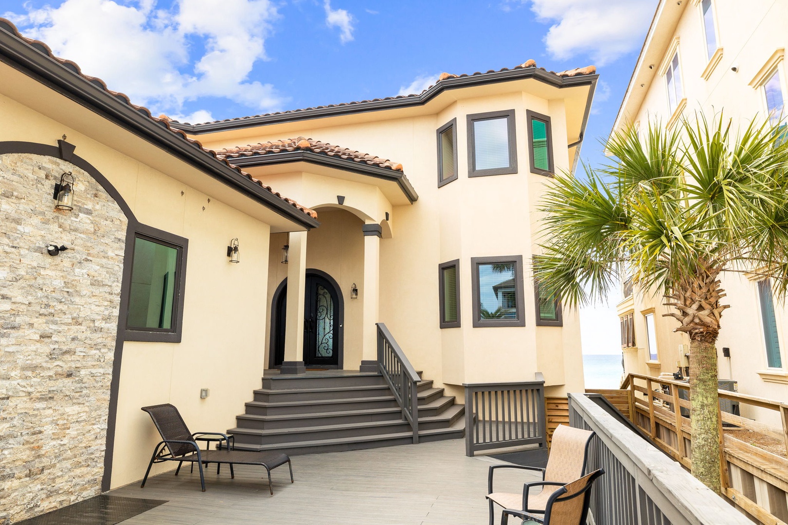 Defined by alluring jewel-tone Gulf views and direct access to sparkling white sandy beaches, Crystal Cabana captivates with its coveted location on the beach of Destiny Shores, one of Destin’s premier luxury communities. In true Mediterranean style and spirit, this two-story luxurious vacation home is a relaxing retreat designed to connect guests to its gorgeous natural surroundings through large windows and doors that access patios, terraces, and balconies with breath-taking ocean views. Crystal Cabana features five spacious bedrooms, five and one-half baths, has private parking for four vehicles, and comfortably accommodates up to 12 guests.