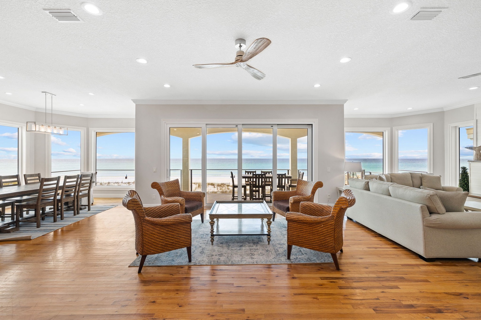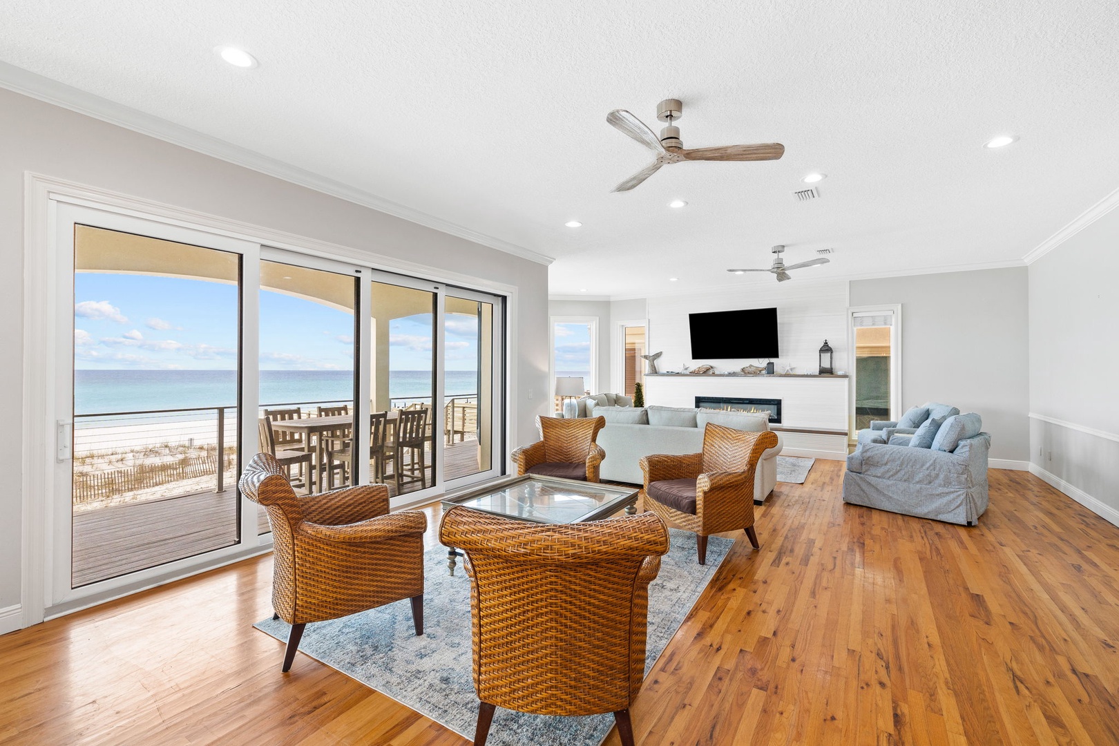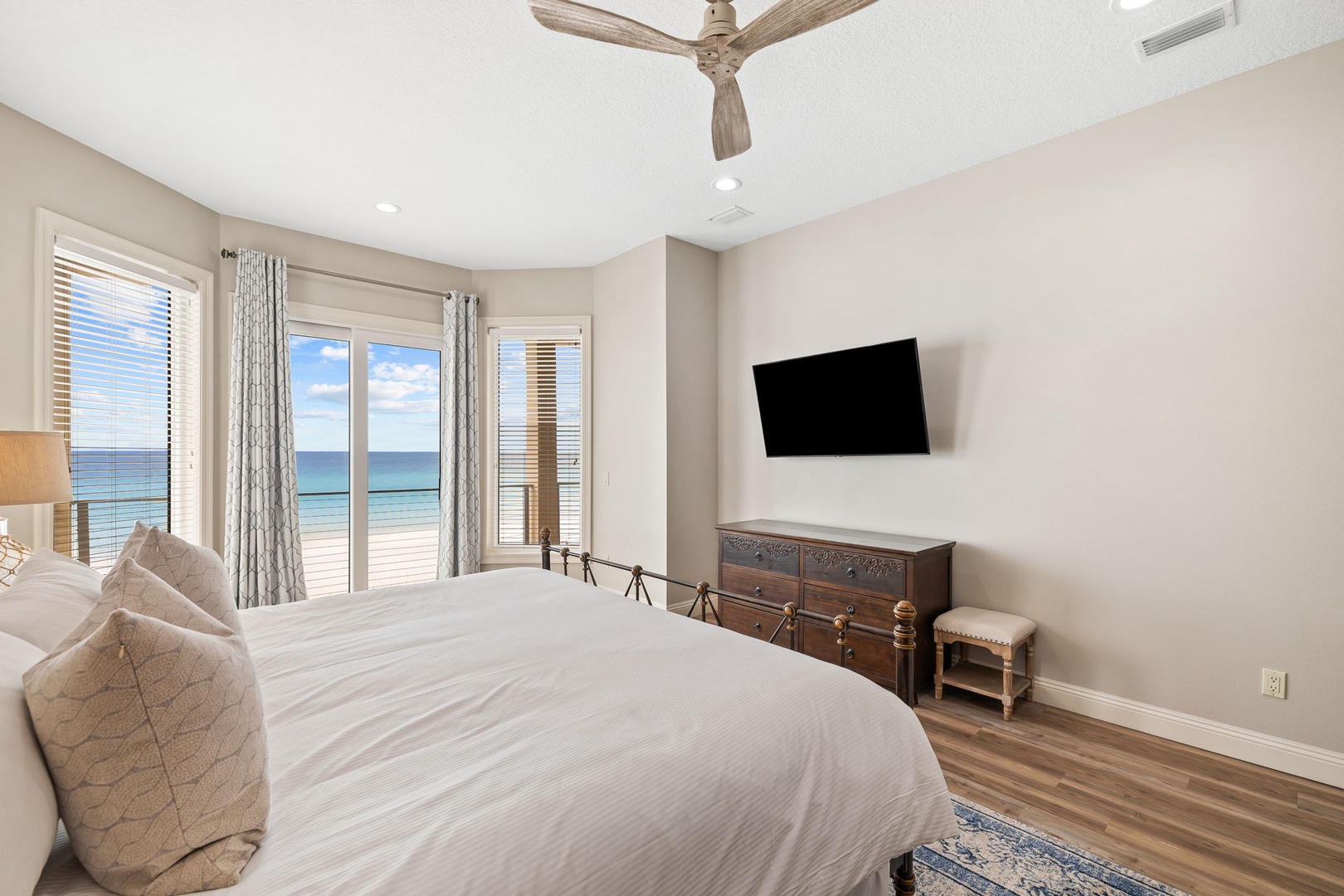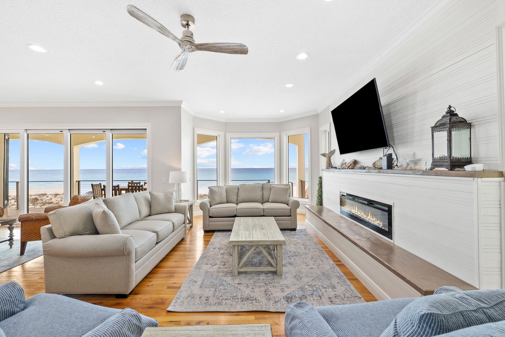 Defined by alluring jewel-tone Gulf views and direct access to sparkling white sandy beaches, Crystal Cabana captivates with its coveted location on the beach of Destiny Shores, one of Destin’s premier luxury communities. In true Mediterranean style and spirit, this two-story luxurious vacation home is a relaxing retreat designed to connect guests to its gorgeous natural surroundings through large windows and doors that access patios, terraces, and balconies with breath-taking ocean views. Crystal Cabana features five spacious bedrooms, five and one-half baths, has private parking for four vehicles, and comfortably accommodates up to 12 guests.