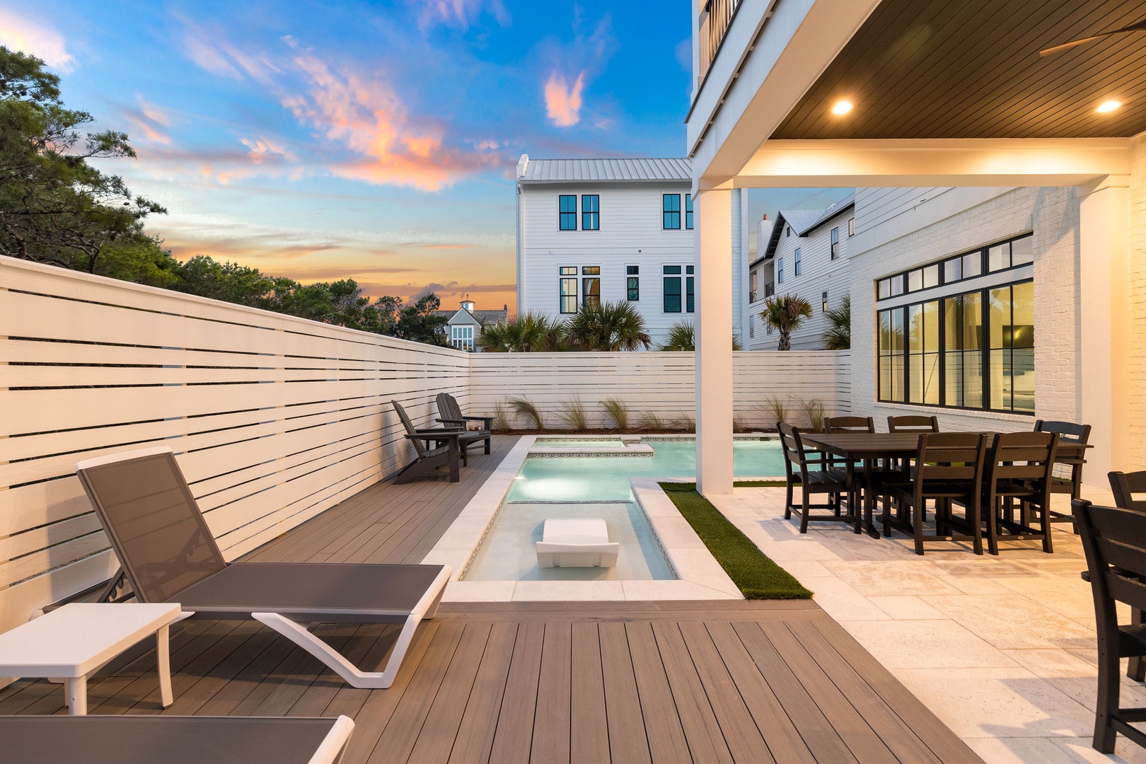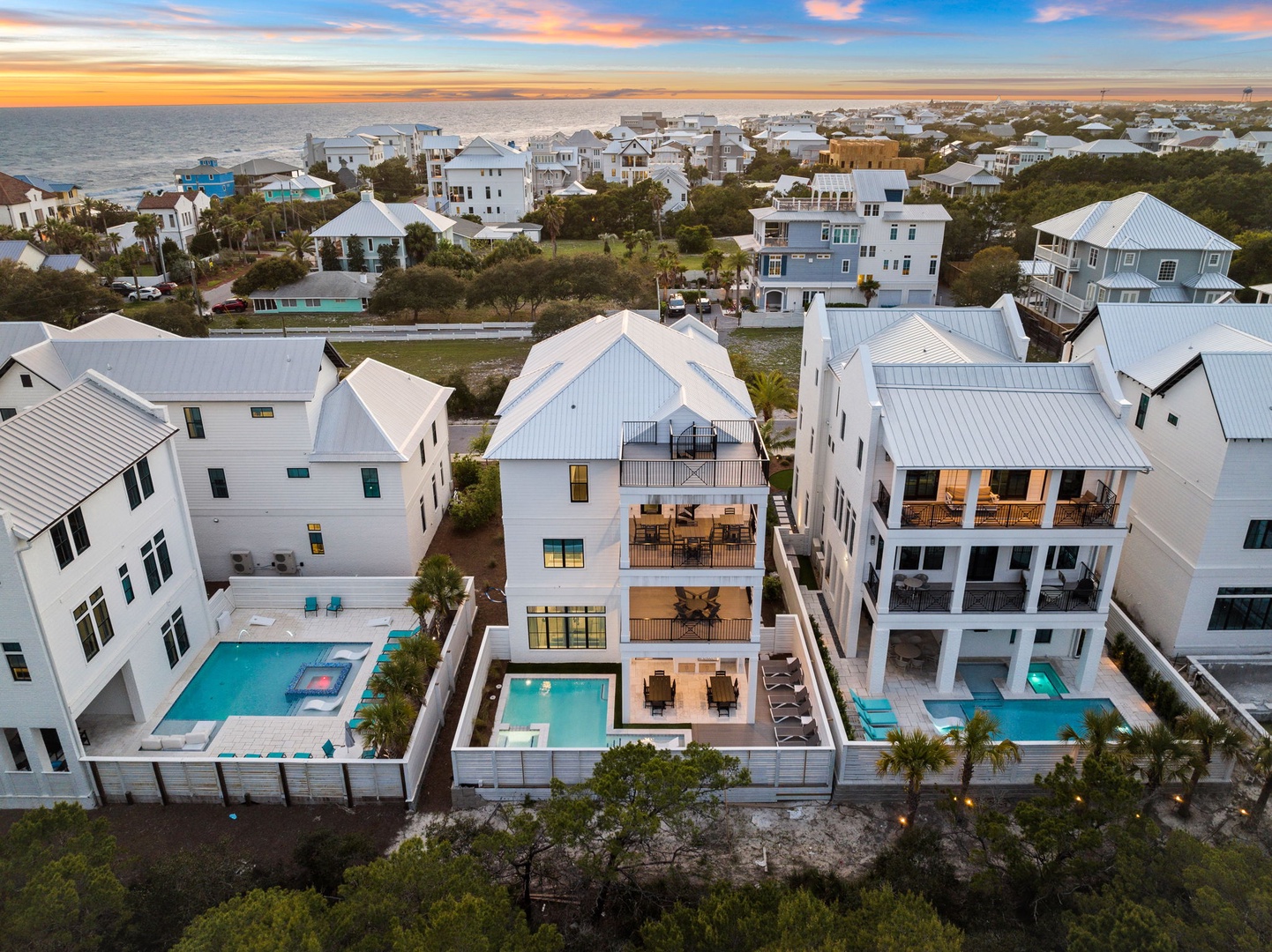 Discover the epitome of coastal luxury at Seven Palms Pinnacle, a magnificent new construction nestled in the prestigious Inlet Beach community. Boasting 8 bedrooms, 8 full bathrooms, and 1 half bathroom, this expansive retreat offers lavish accommodations for up to 28 guests, making it the ideal choice for unforgettable gatherings with family and friends.