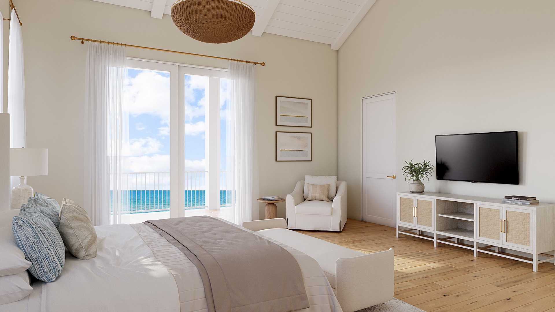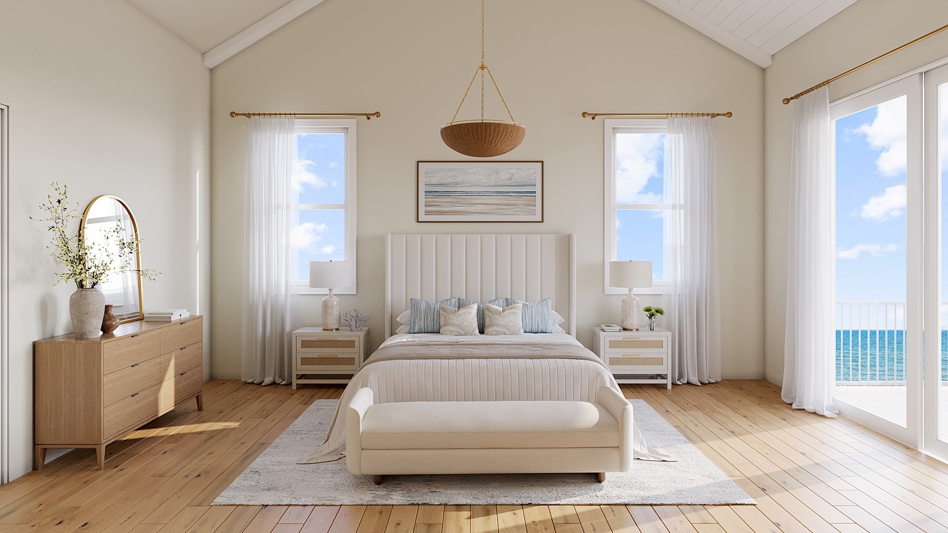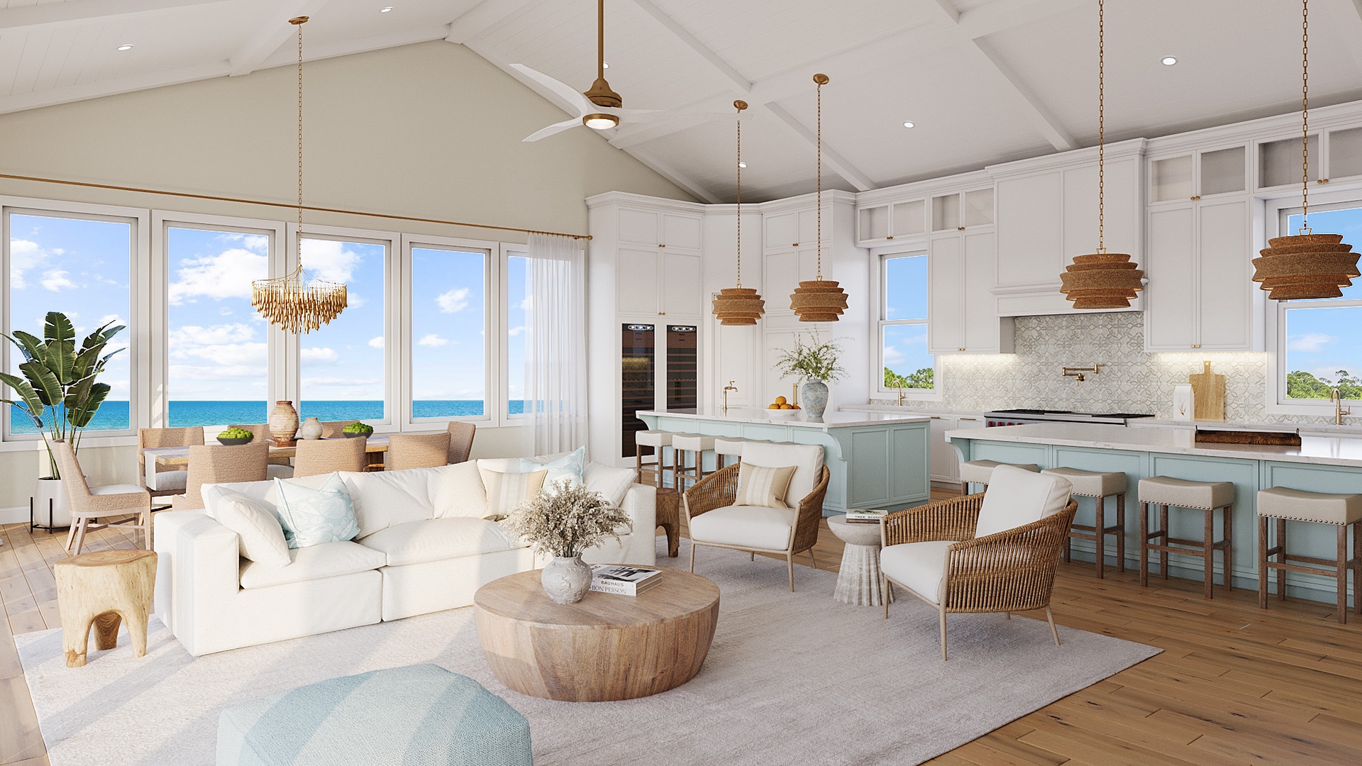 The second floor features four well-appointed king guest bedrooms with ensuite bathrooms. Also on the second floor is a centrally located laundry area. A private balcony on this floor offers a quiet space to enjoy the coastal breeze.