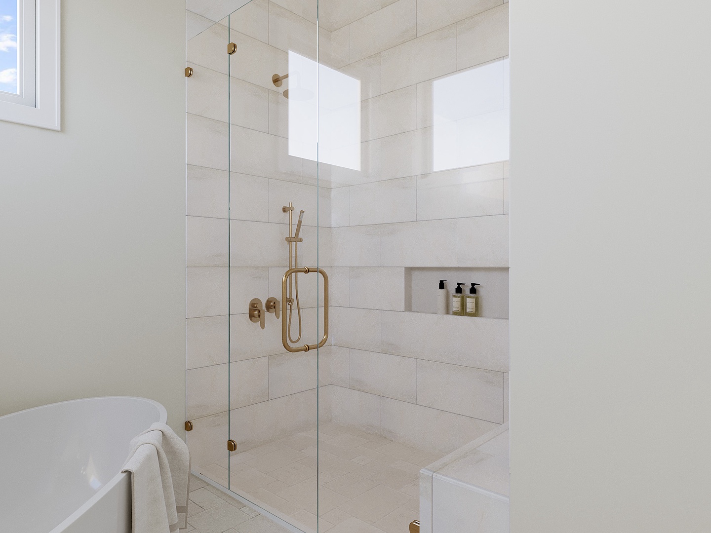 • Guest King Suite (Sleeps 2): King Bed & Ensuite Bathroom – Single Vanity & Tile/Glass Shower